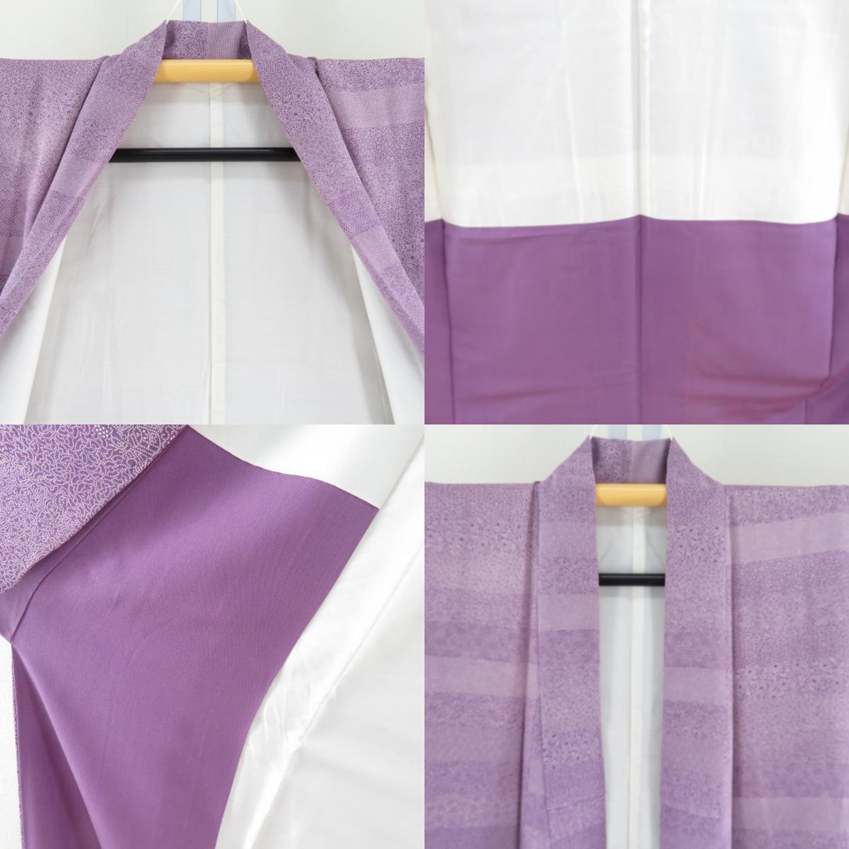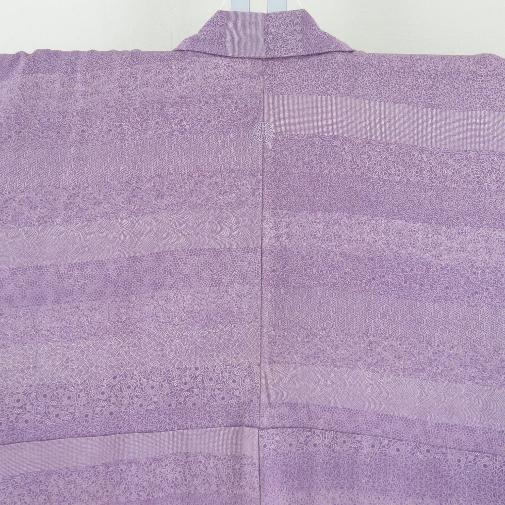 | 江戸小紋 寄せ小紋 紫色 一つ紋 抱き茗荷紋 正絹 袷 バチ衿 仕立て上がり着物 身丈156cm |