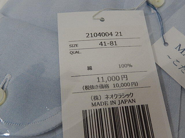 へ)  新品 未使用品 長袖 ワイシャツ  ビジネスシャツ 41-81 メンズ 日本製 綿100%