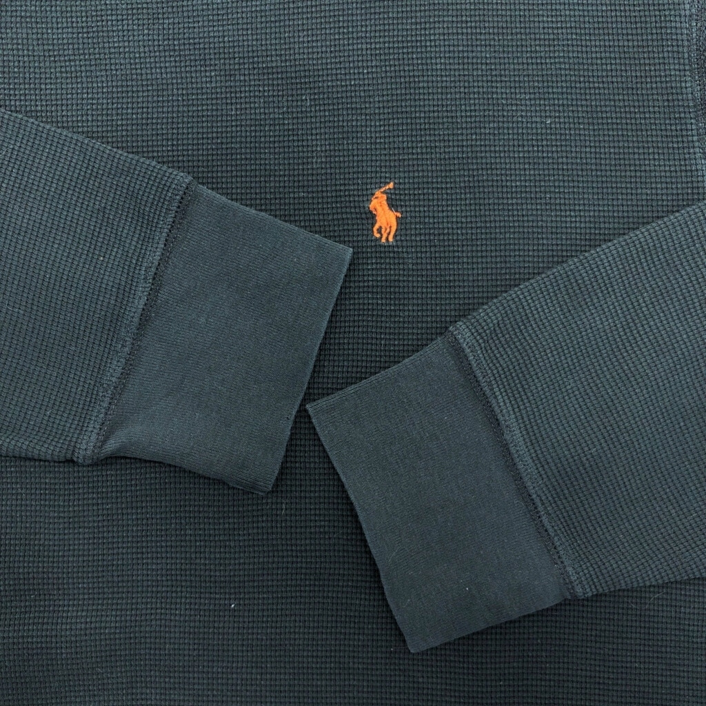 | [商品管理番号] U2048 [ブランド] Polo by Ralph Lauren/ポロ ラルフローレン [サイズ] XL [実寸サイズ] 肩幅:約56cm 着丈:約72cm 身幅:約65cm 袖丈:約62cm [主な素材] 表地 : コットン [色] ブラック [仕様] [状態] 汚れ:裾 キズ:袖、袖先 破れ:袖、裾 特記事項:色褪せ | |||