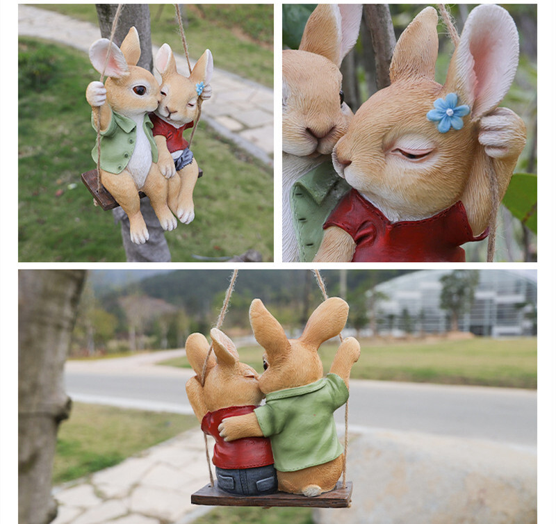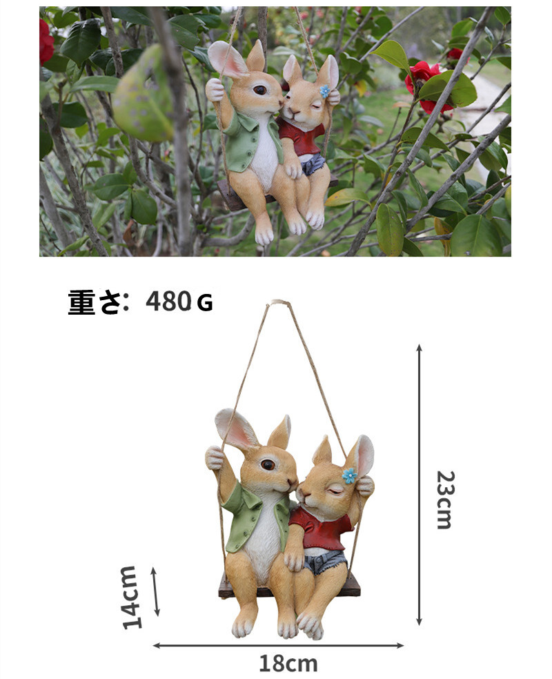 ガーデニング置物 ガーデンオーナメント 吊り下げタイプ 防水ウサギ 置物 防水ガーデニング雑貨 インテリア雑貨
