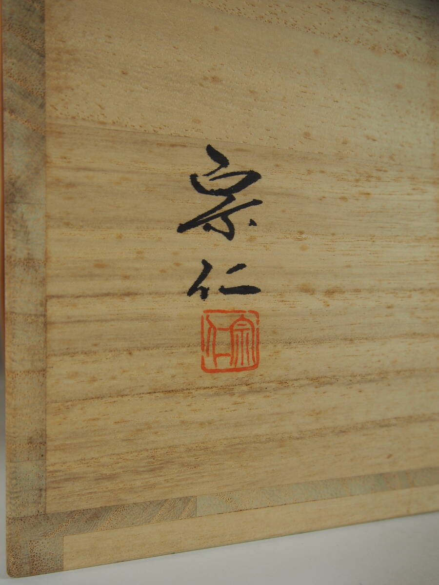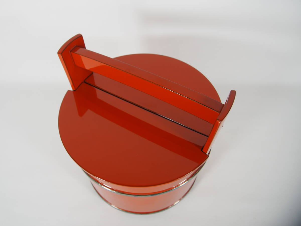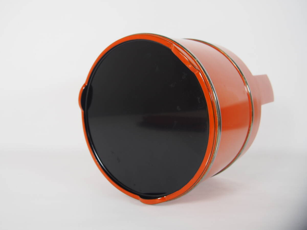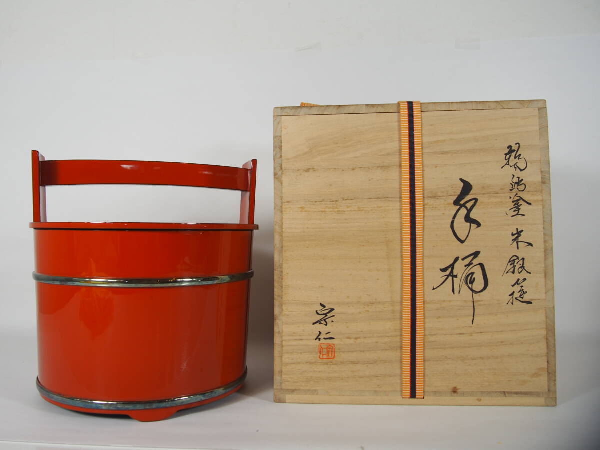 宮平宗仁 仁昭 輪島塗 朱塗 銀箍 手桶 水指 木製 共箱 茶道具 S-220