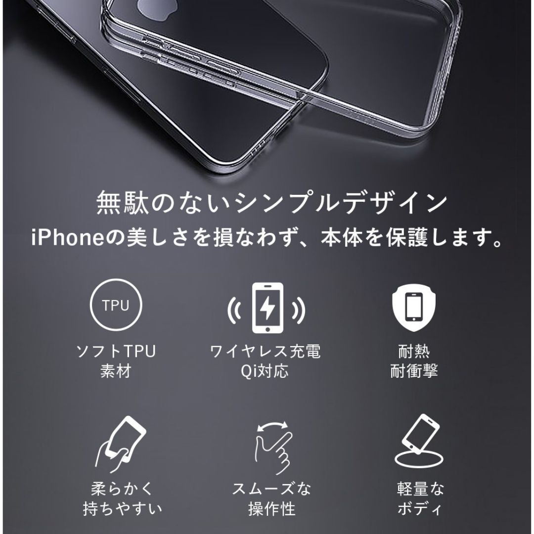 1. 究極の透明感と黄ばみ防止 透過率90%以上の高品質クリア素材に、最新の黄ばみ防止技術を採用。クリアケース特有の経年劣化による黄ばみを徹底的に防ぎ、購入したてのような透明感を長期間維持します。iPhone本来の美しいカラーをそのままお楽しみいただけます。
