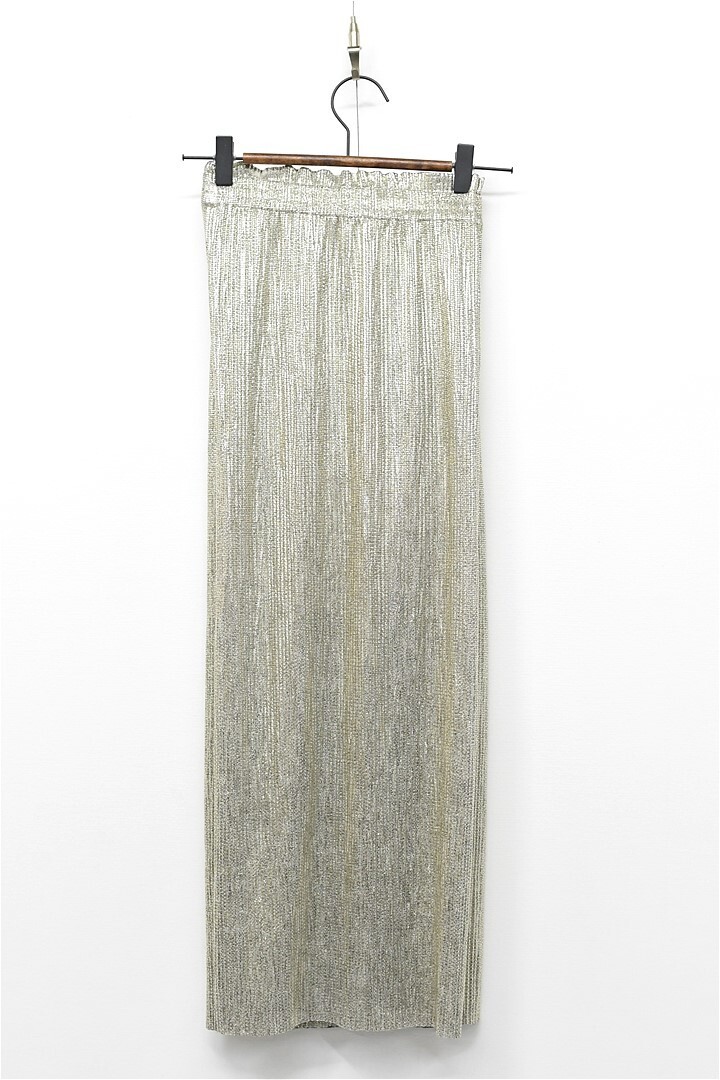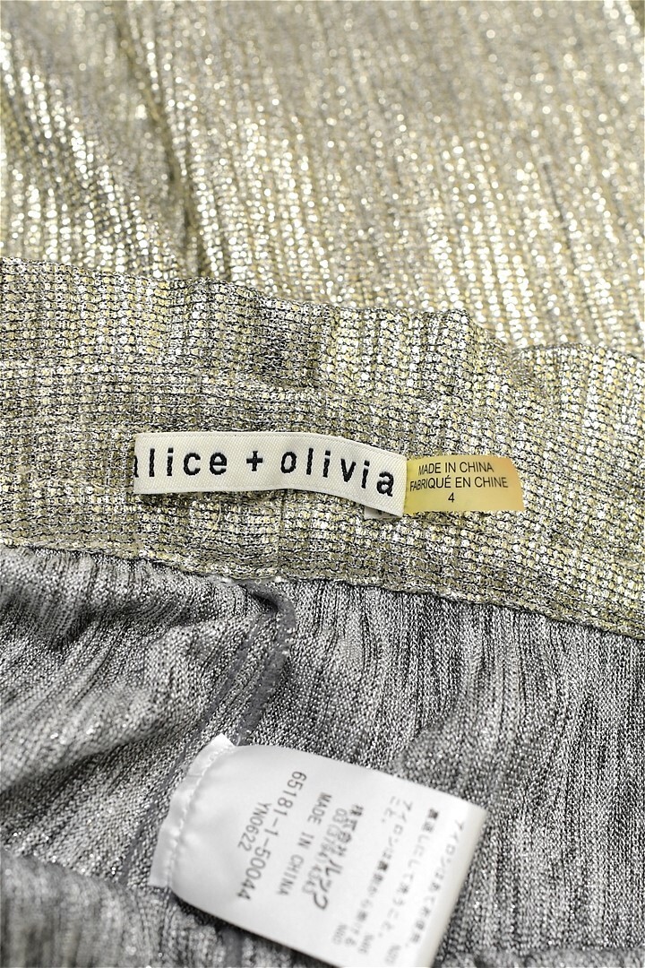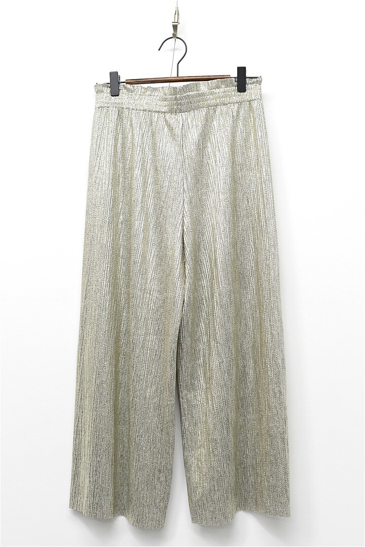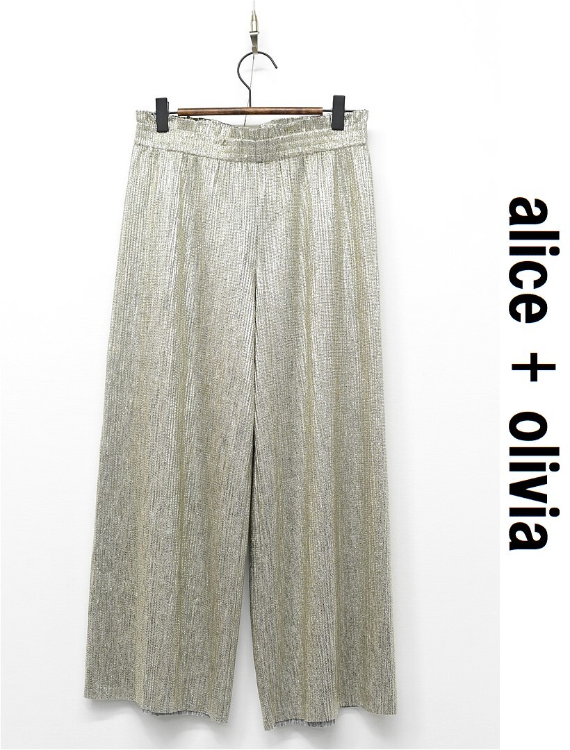 V263/美品 alice+olivia アリスアンドオリビア ワイドパンツ クロップドパンツ 光沢 ストレッチ ウエストゴム 4 S ゴールド 春夏秋