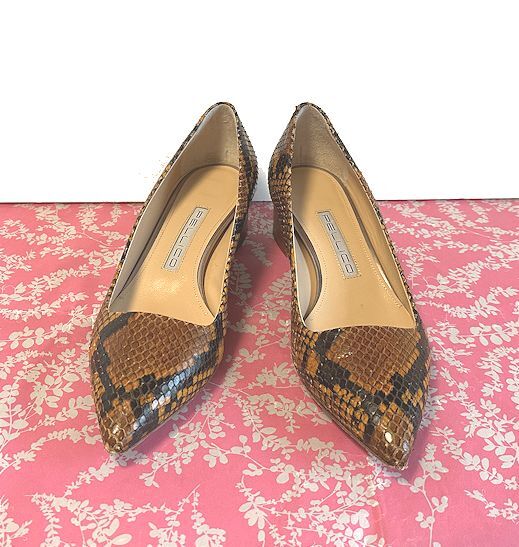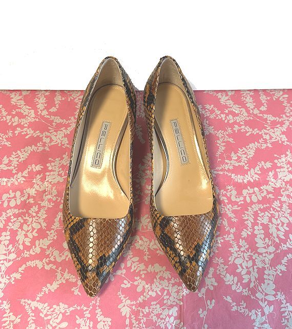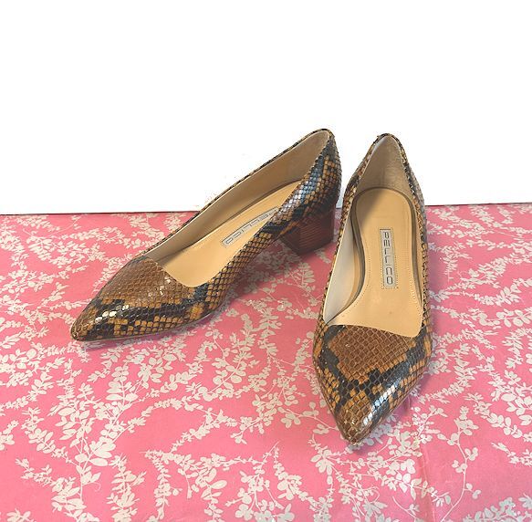 値下★PELLICO ペリーコ★パイソンレザー・アンドレア・ポインテッドトウ・ローヒール・パンプス・ブラウン×ブラック・35.5★美品