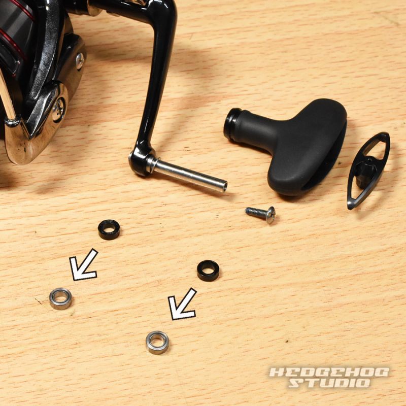 ハンドルノブ部分も2個の黒いプラスチックカラーをベアリングに交換することで、2BB仕様にできます。