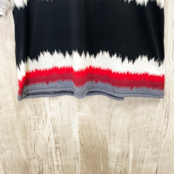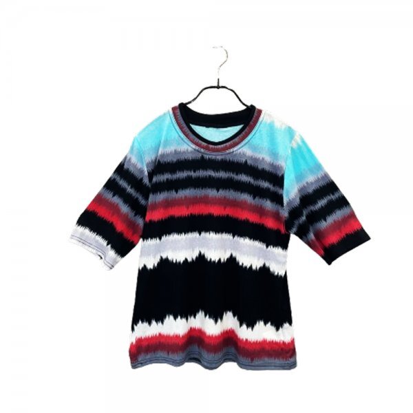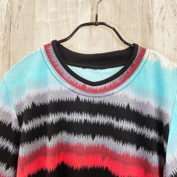 ap9981 ○送料無料 新品 レディース Tシャツ M~Lサイズ ブルー レッド ホワイト カラフル 波ボーダー柄 クルーネック 伸縮性 通気性