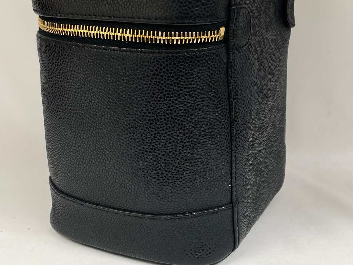 | 送料無料 CHANEL シャネル バニティバッグ キャビアスキン ハンドバッグ シリアル付 ココマーク メイクポーチ ブラック レザー 黒 | |||