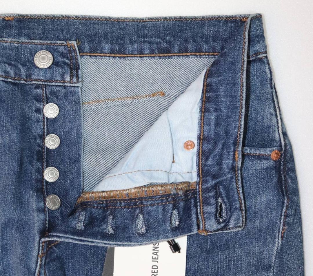 ストレートジーンズに代わる洗練されたモダンなデザイン。レッドバックパッチ。