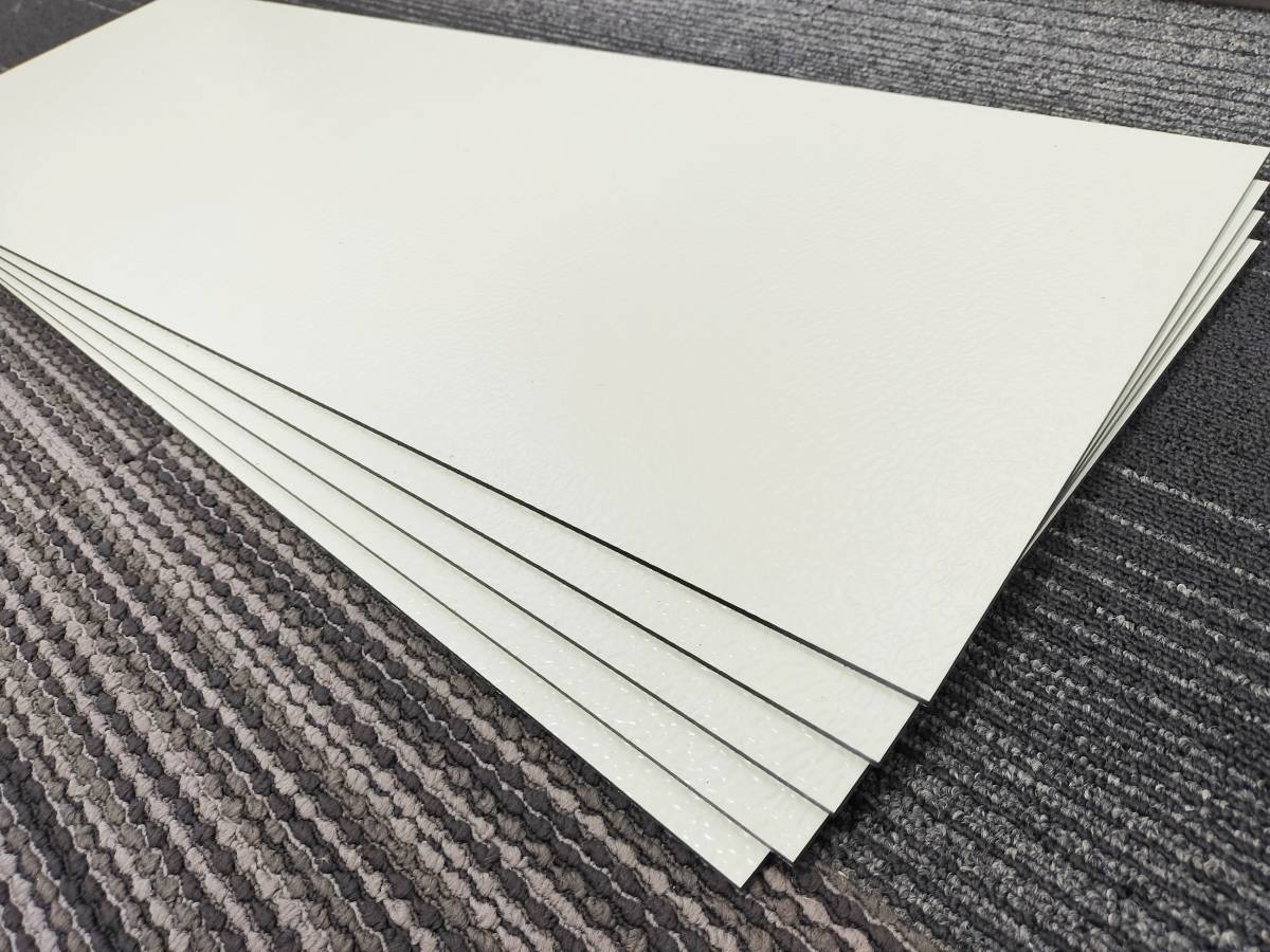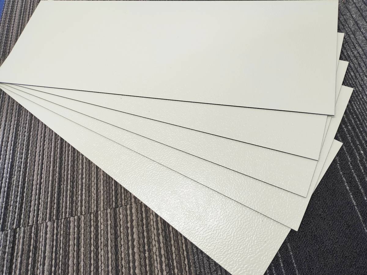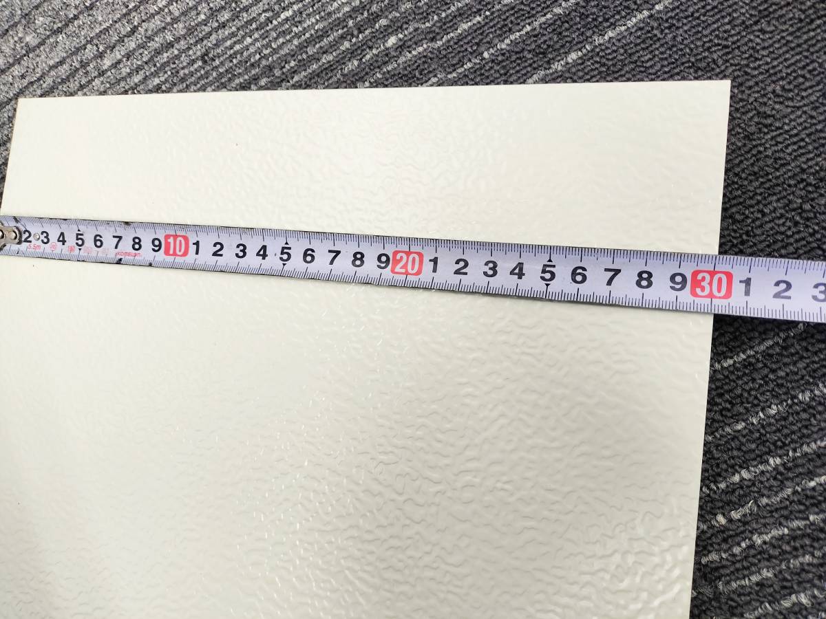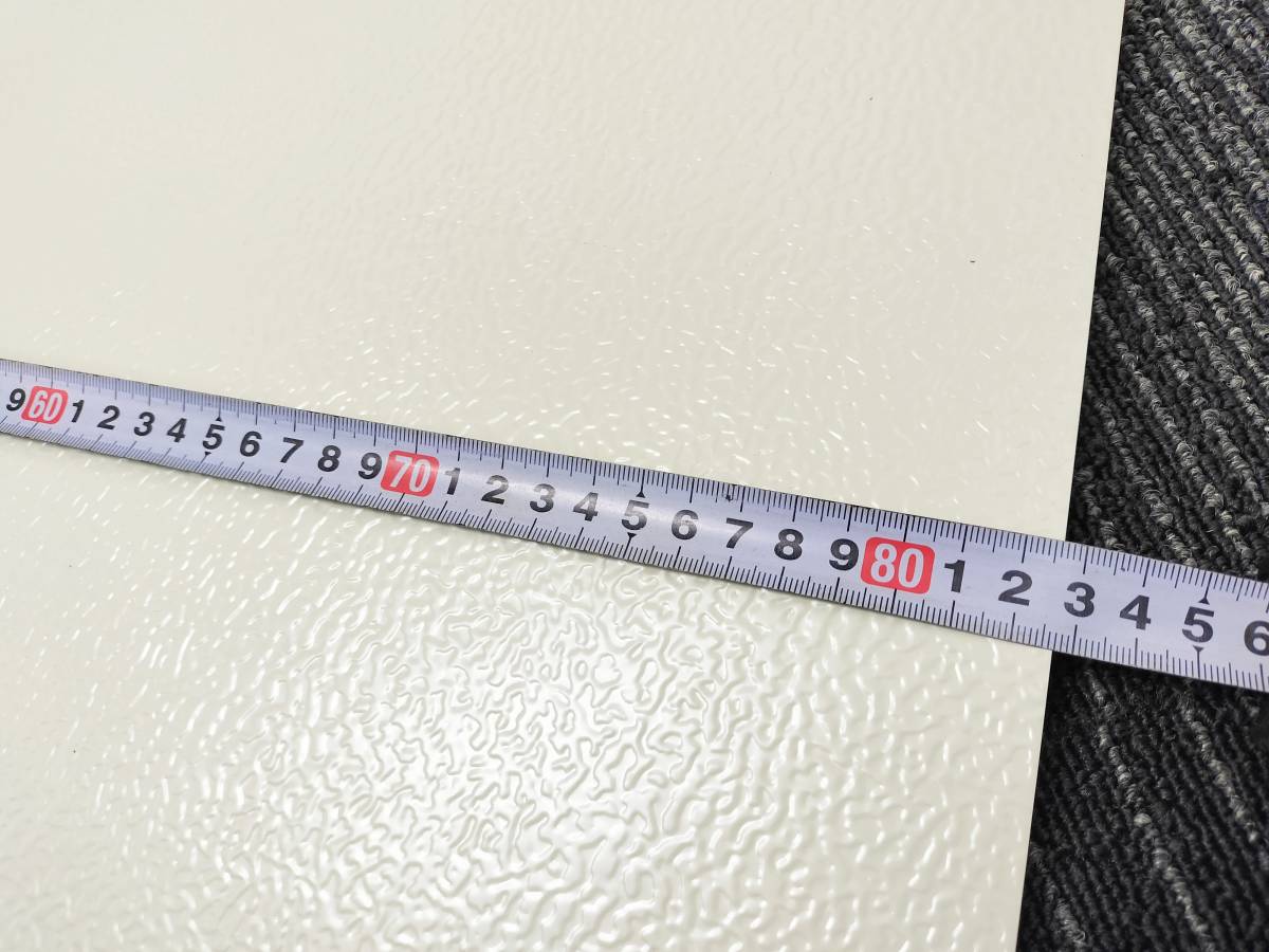 表面はエンボス加工、ポリエステル樹脂塗装(傷に強い)、裏面は平ら