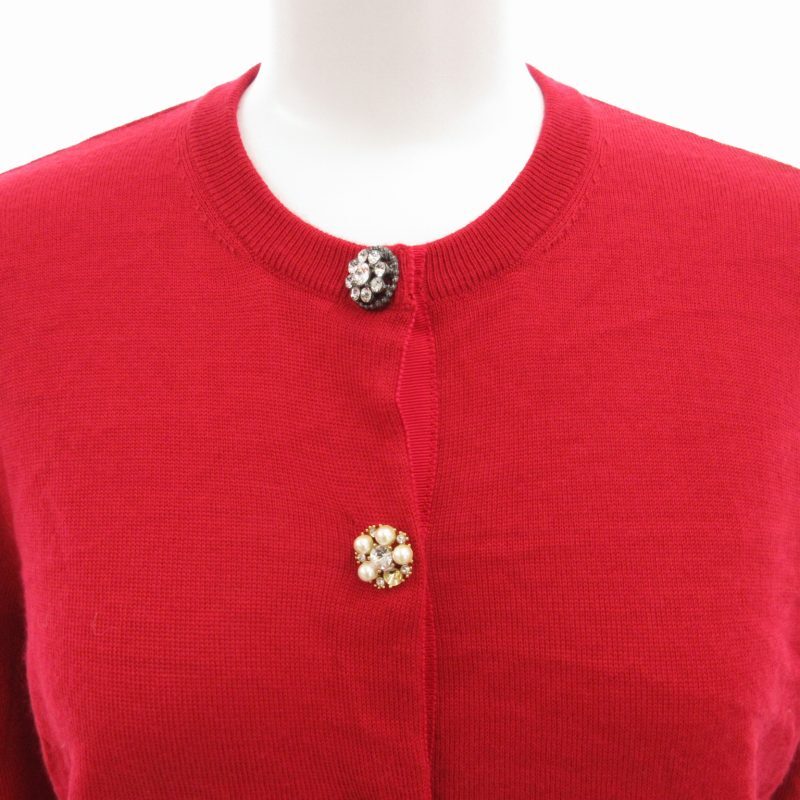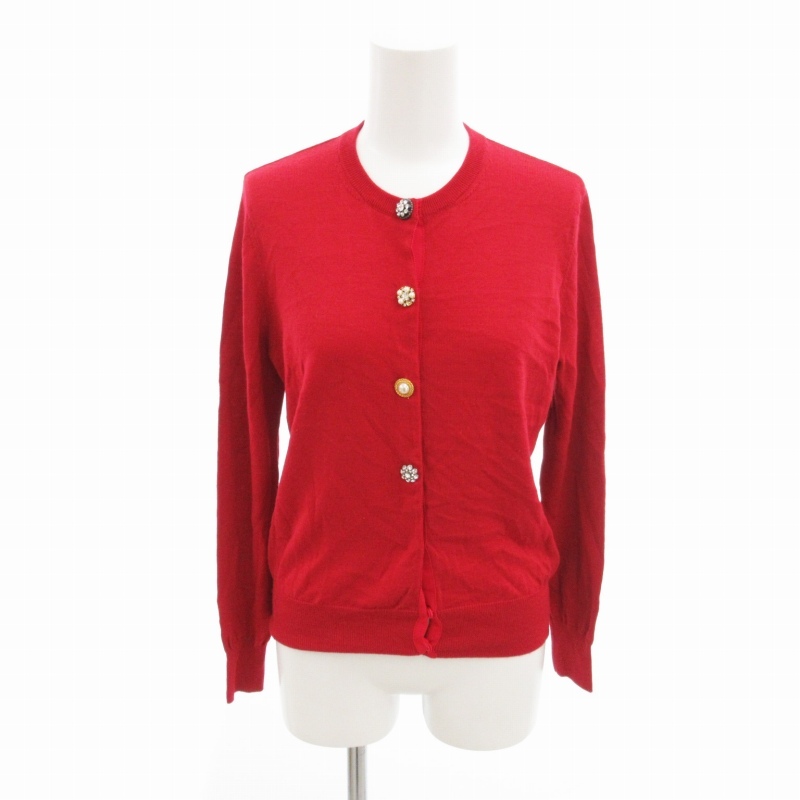 23区 オンワード樫山 ニット カーディガン ボタン ビジュー ウール 長袖 38 赤 レッド /HO レディース