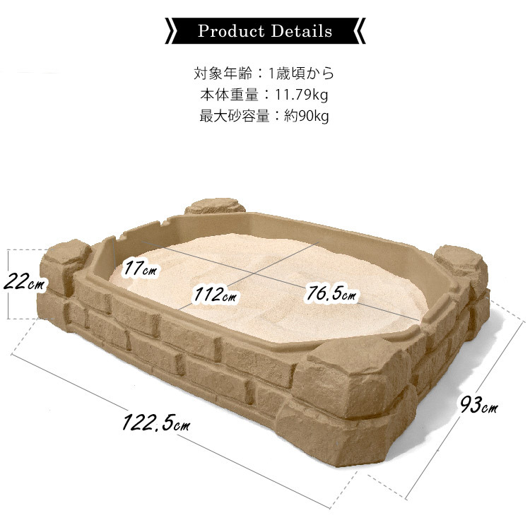 仕様 | ・フタ付きで猫などから砂を守ります。 ・イスにもなる角部分。(22.67kgまで) ・砂容量:最大90.7kg ・使わなくなった後は、底に穴を開けてプランターとしてもお使いいただけます。 ・抗菌砂(15kg) × 5袋付き |