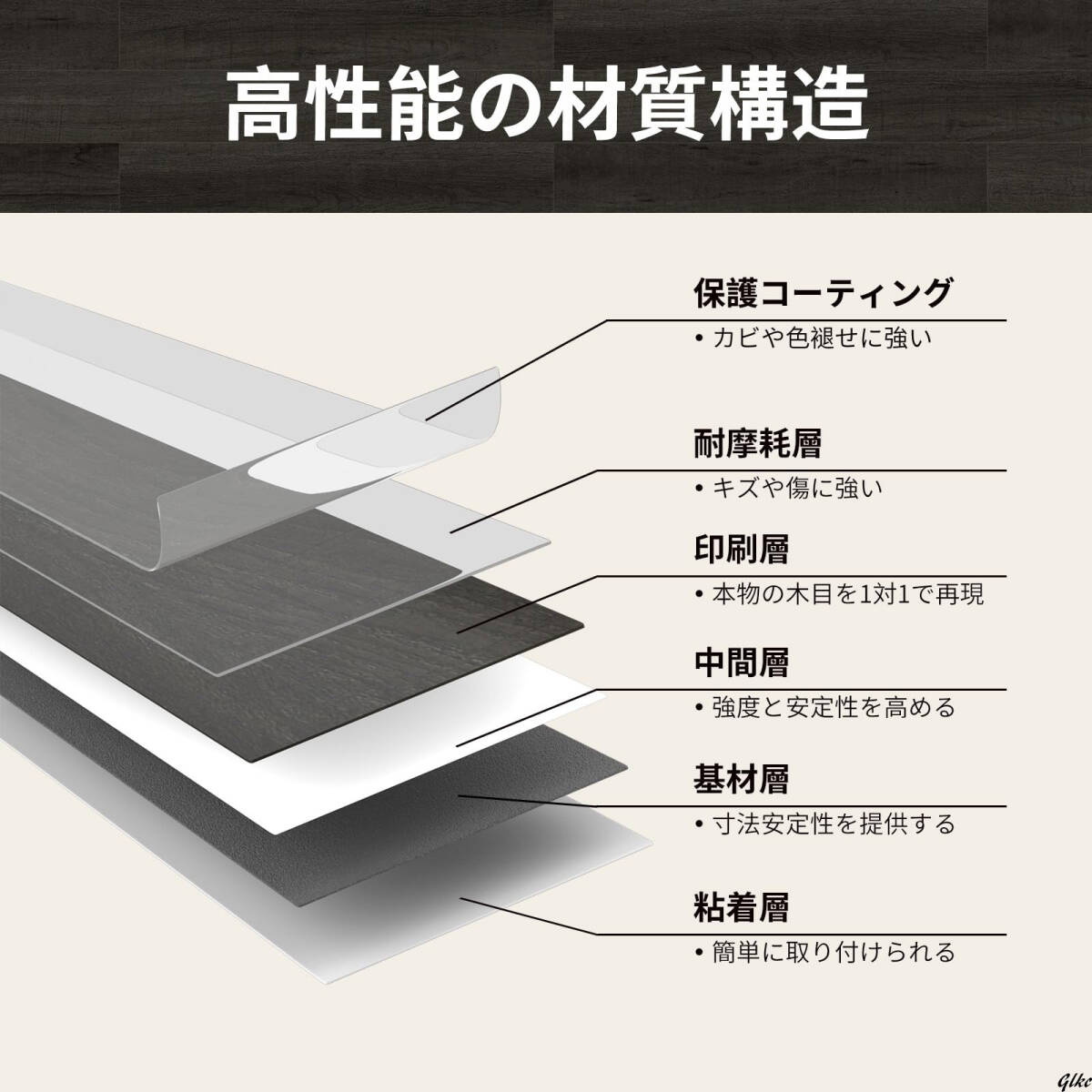 このフロアタイルは、DIY初心者でも簡単に施工できるシールタイプの床タイルです。