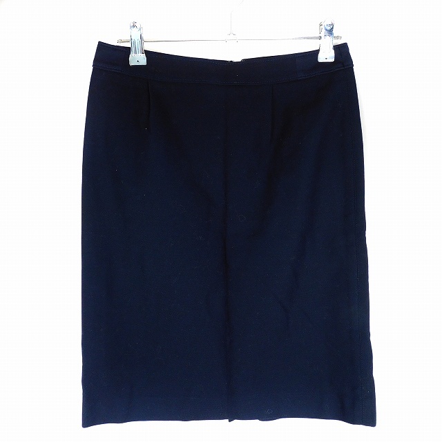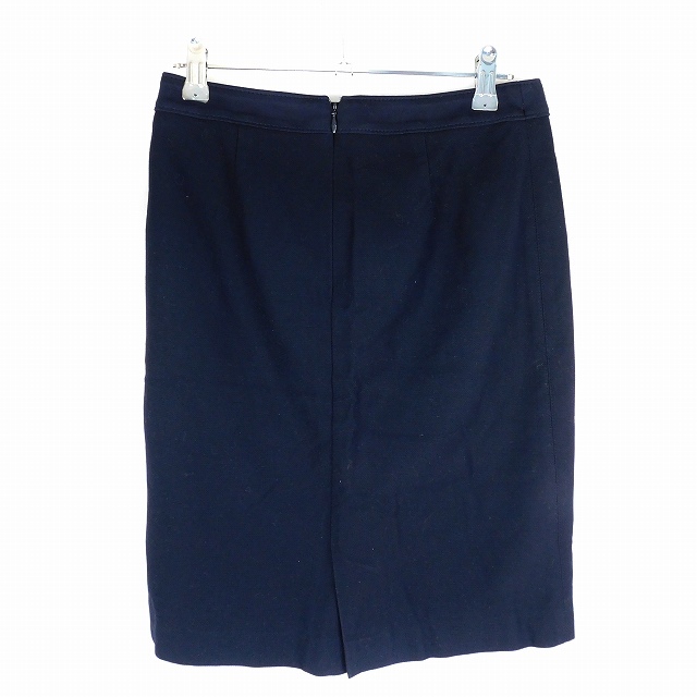 インディヴィ INDIVI スカート タイト ひざ丈 バックファスナー コットン 無地 36 紺 ネイビー ボトムス /T2 レディース