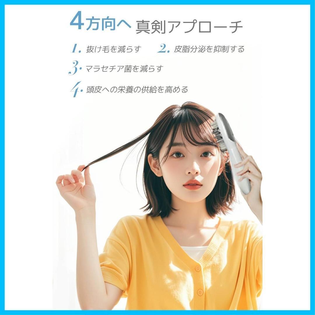 【大容量タンク・5本液体導入櫛歯】取り外し可能な液体収納ボックス設計。中央の5本液体導入櫛歯は、ケアしながら美容液などの流しは可能で、電極ピンとの組み合わせで、育毛剤などをしっかり頭皮に伝達。ご使用前に、頭の脂や水分などの汚れを拭き取り、頭皮が清潔な状態になっていることを確認してください。使用後に櫛歯を下にして垂直に置くことは禁止されています。液漏れの原因になります。