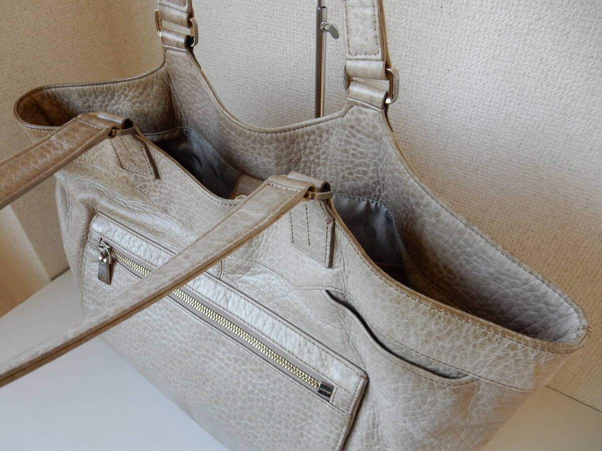 日本製☆本革☆aniary(アニアリ)☆大判B4対応☆6ポケット☆肩掛けOK☆トートバッグ サンドベージュ(金具ゴールド)