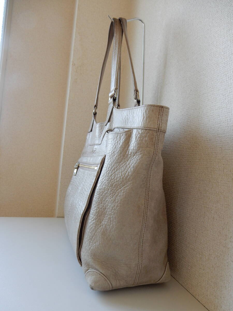 立体感のある皮革使いがアクセントとなった本革トートバッグ。