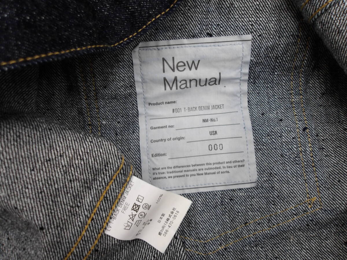 希少 ! New Manual #001 T-BACK DENIM JK デニムジャケット ジージャン サイズ F