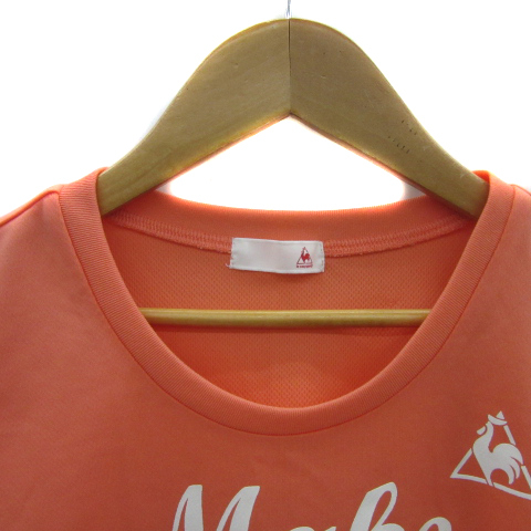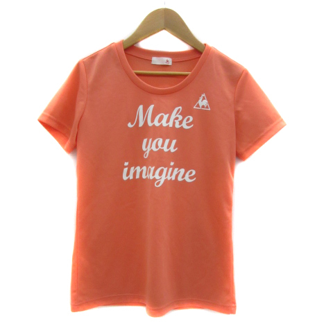 ルコックスポルティフ le coq sportif スポーツウェア Tシャツ カットソー 半袖 ラウンドネック プリント M オレンジ 白 レディース