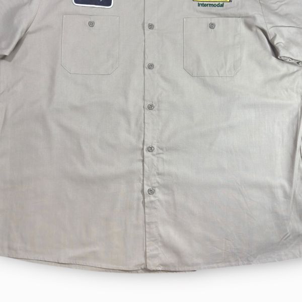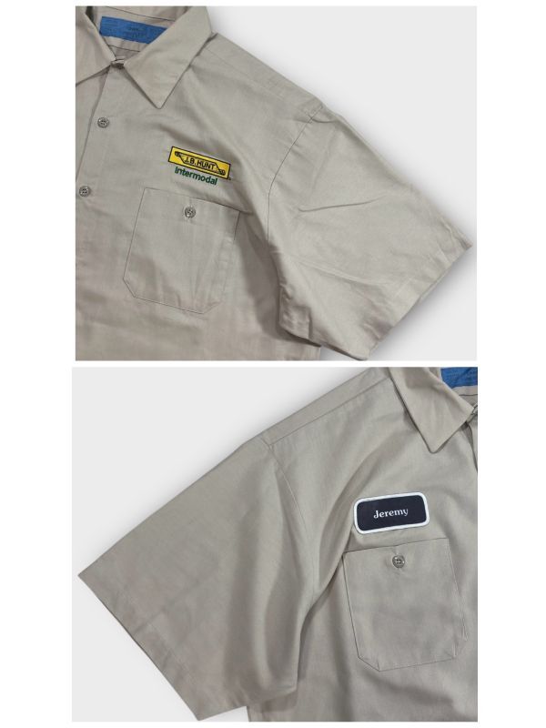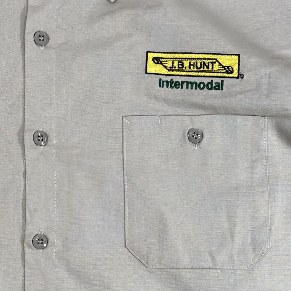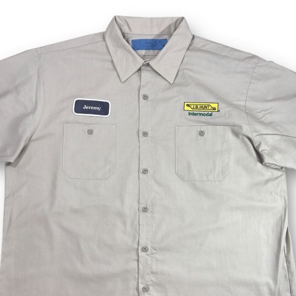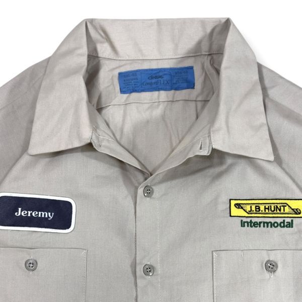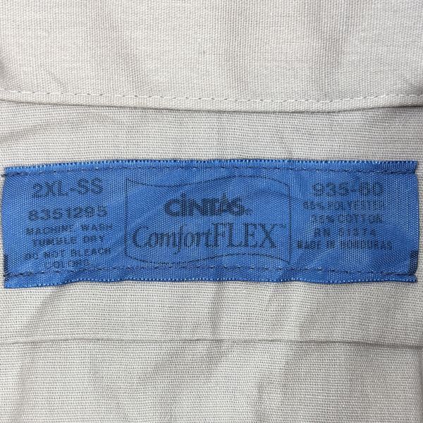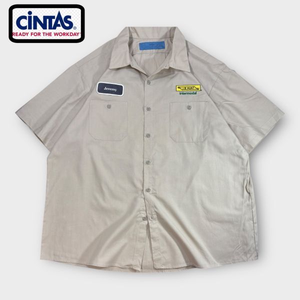 ★J.B.HUNTロゴ刺繍★CINTAS 半袖ワークシャツ size2XL ベージュ系 シンタス 古着 クリーニング プレス済み 2180