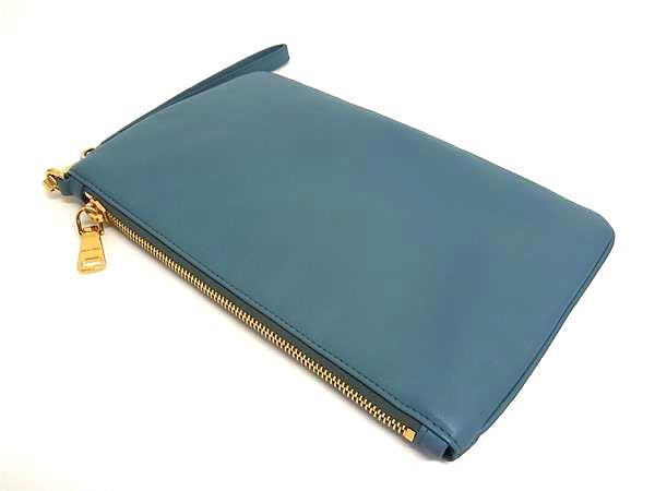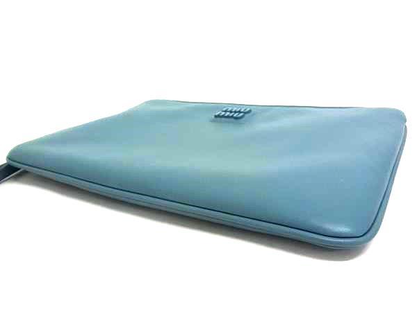 ■新品■未使用■ miumiu ミュウミュウ レザー ポーチ マルチケース 小物入れ レディース メンズ ライトブルー系 FN0511