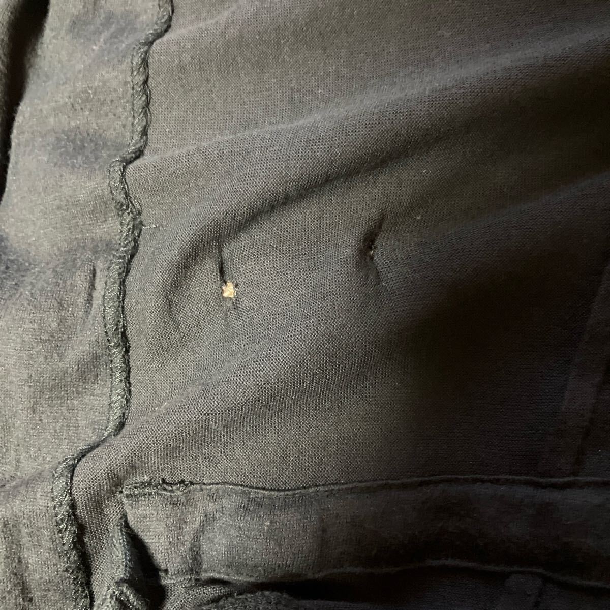 コットン×カシミヤの薄手のデリケートな素材なのでトグルの付け根にほつれがありピンホール、付着汚れが複数あります。