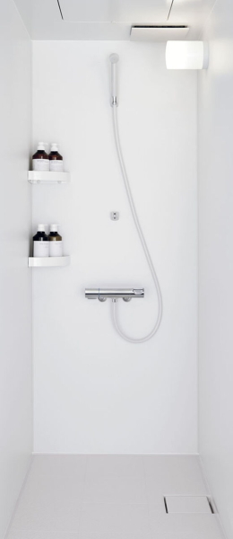 ・シャワーユニット外側は化粧パネル等で施されていませんので別途壁工事等が必要です。