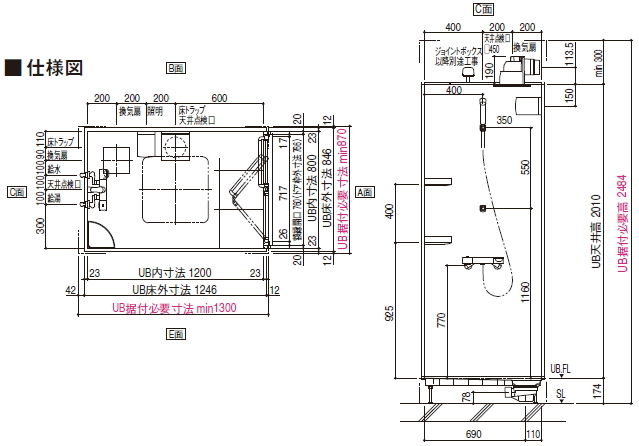 シャワーユニット本体組立工事のみとなります。