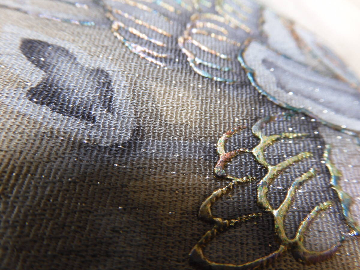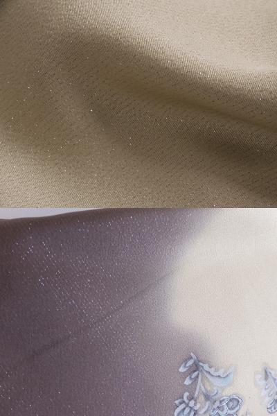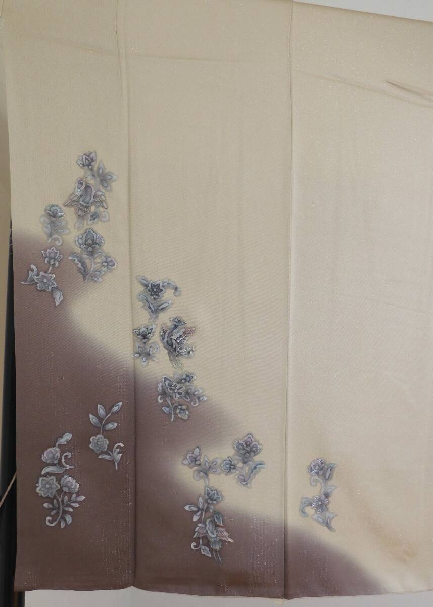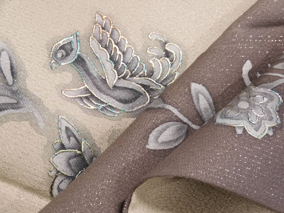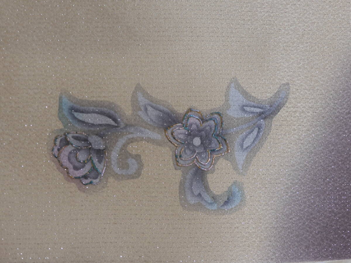 大変美しい訪問着です。八掛にも同じように銀通しの布が使われ、個性的な文様が描かれています。