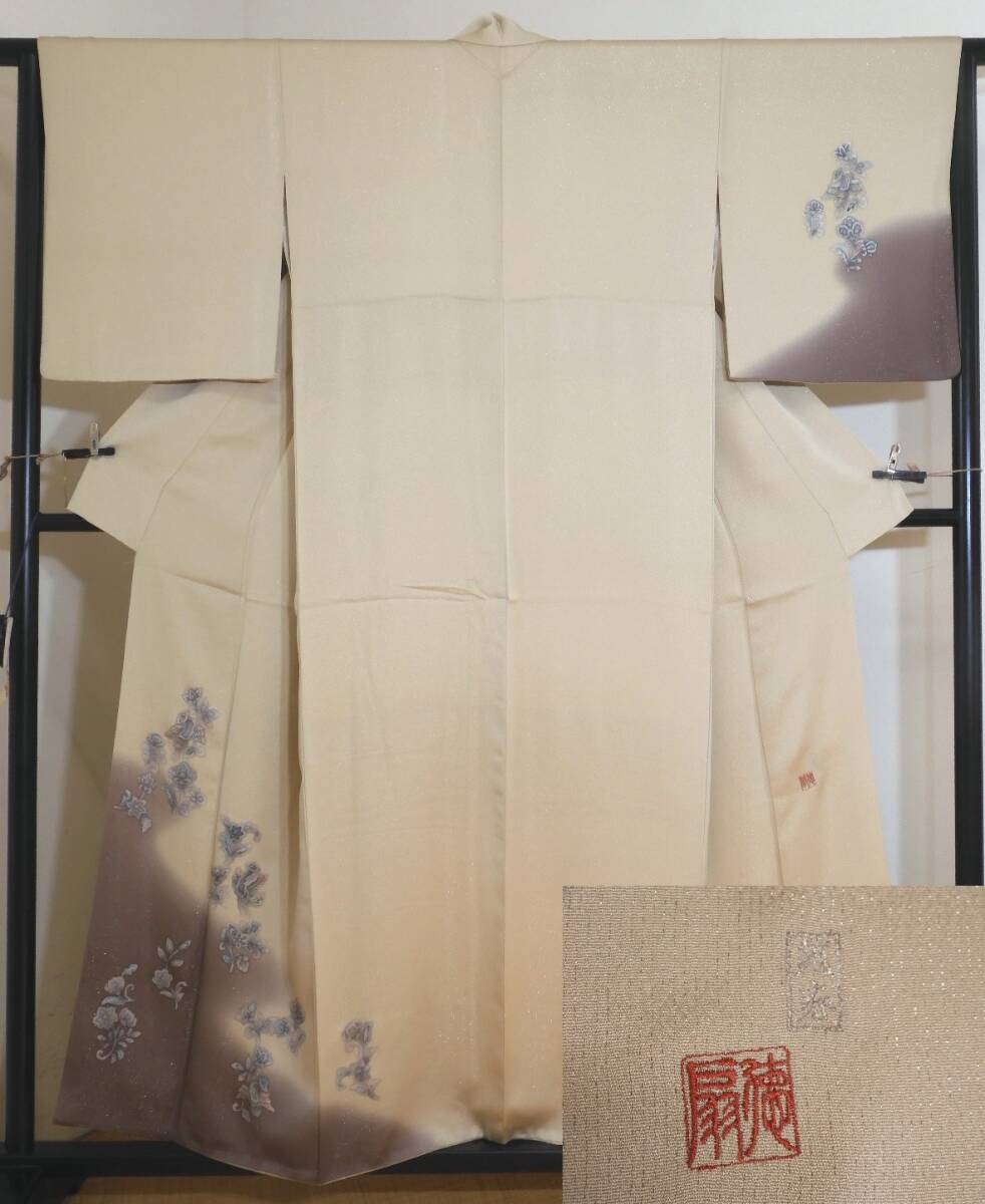 <銀の斧>藤林徳扇作・苑寿織訪問着袷着物・国際的工芸作家・紋無し・銀通し布