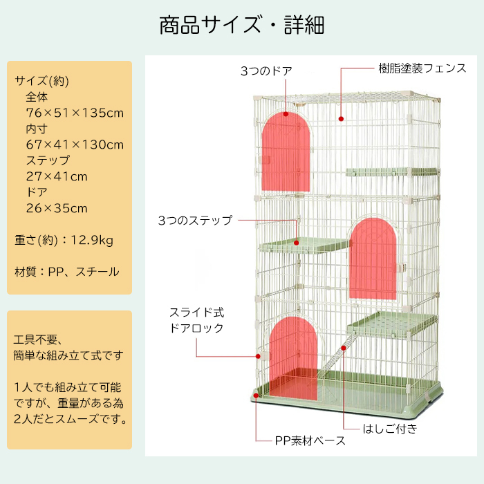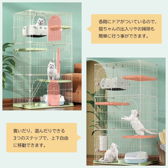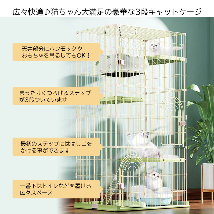 キャットケージ ペットケージ 猫 ケージ 3段 組み立て簡単 スチール 安全 北欧 おしゃれ ゆったり 快適 ステップ 安心 ロック"