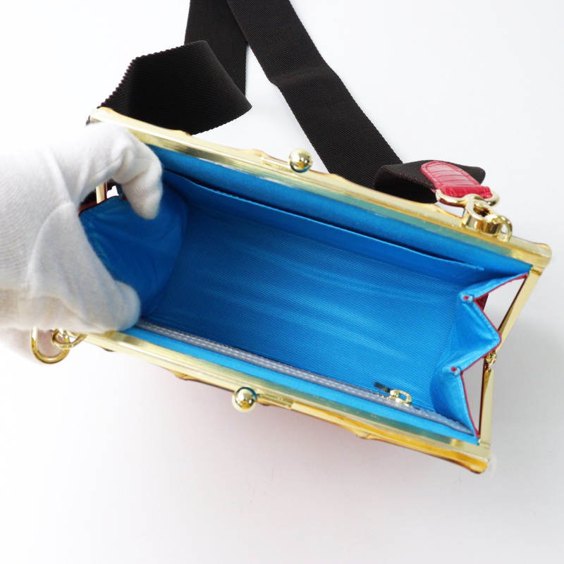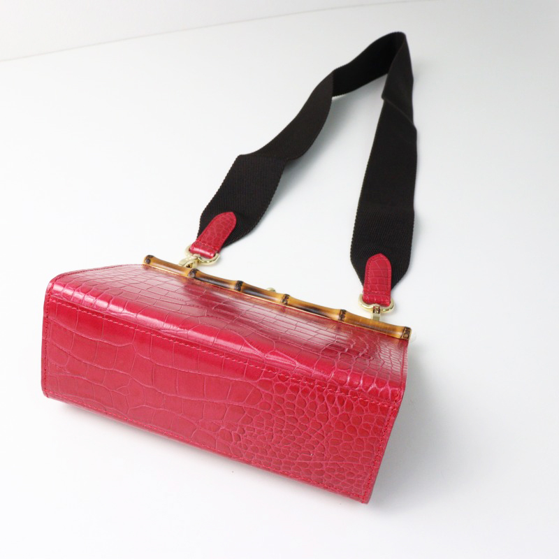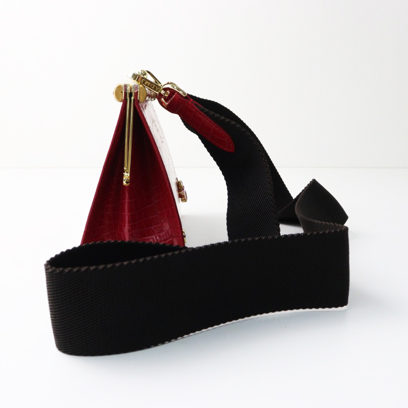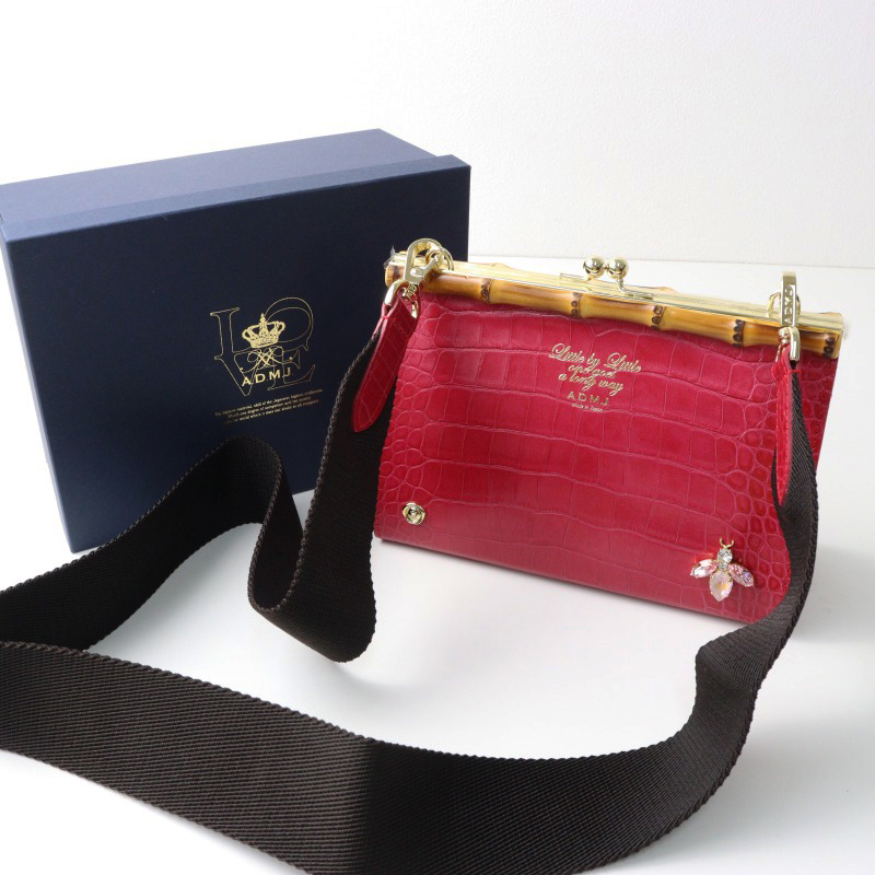 未使用 2023AW エーディーエムジェイ A.D.M.J. アクセソワ THE BEE クロコ型押し ショルダー かま口ホーチ ルビー【2400014430349】