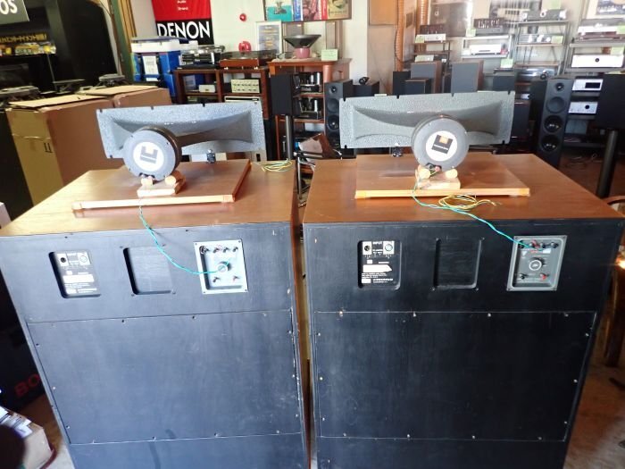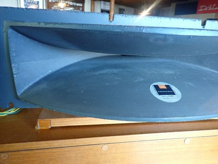 | 商品紹介 | ■JBLの強烈でウーハ2440 ドライバー2440にホーンは2397の名機組み合わせ■ ■> 特 色 ■ 2440 :ドライバーアルニコ 375を原型とする大ホールや劇場用の音響再生用に適したドライバーユニット。 アルニコVマグネットの強力な磁気回路とダイヤモンドサスペンション・ダイアフラムを組み合わせることで、大口径ドライバーでありながら18kHzの高音域までスムーズにレスポンスを拡大しています。 2440 当時 169700円×2本 スロート径5cm インピーダンス16Ω 許容入力(連続プログラム)60W 音圧レベル118dB(1mW、9.1m) 周波数特性500Hz~12kHz ネットワーク 3110 当時 46000×2本 型式ディバイディングネットワーク クロスオーバー周波数800Hz 許容入力(連続プログラム)100W インピーダンス低音域:12~16Ω 高音域:12~16Ω 高音域アッテネーション6、8、10dBスイッチ ホーン 2345 当時63.600円×2本 ネットワーク: ウーハー:2205J 当時58000円×2本 インピーダンス2205H:8Ω インピーダンス2205H:8Ω 2205J:16Ω 許容入力(連続プログラム)300W 音圧レベル97dB/W/m 周波数帯域30Hz~2kHz fo28Hz 磁束密度12,000Gauss エンクロージャー容積142~227L エンクロージャー容積142~227L 4560 サンスイ想定メーカー売価135000円×2円 こちらのエンクロージャーJBLの4350BKと同じ感じですが背面はサンスイ電気のプレートが付いて大変珍しいBOXでPAにも対応出来るXLRのプラグが付いてります。 |