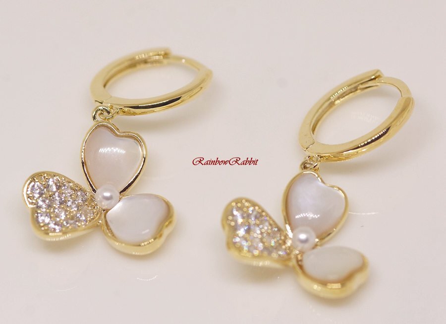 18K RGP ゴールド ダイヤ CZ 三つ葉 リング ピアス gp5563