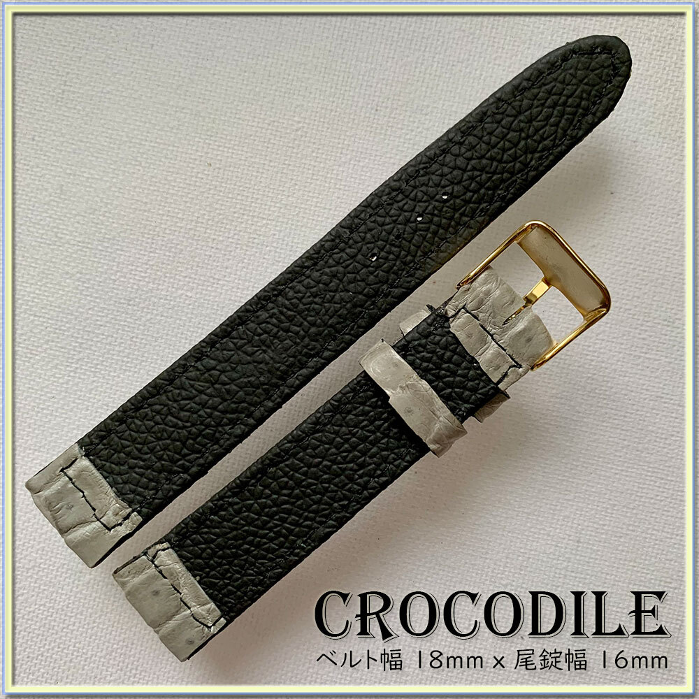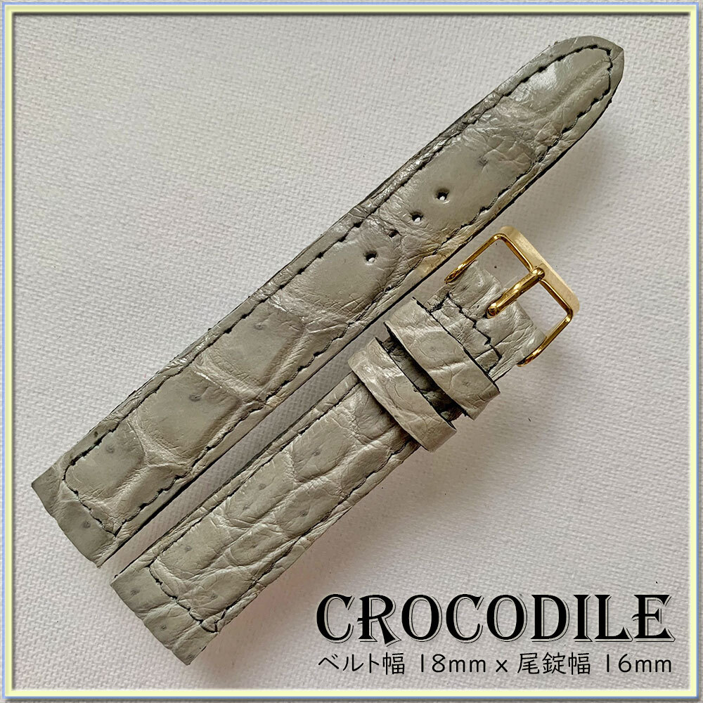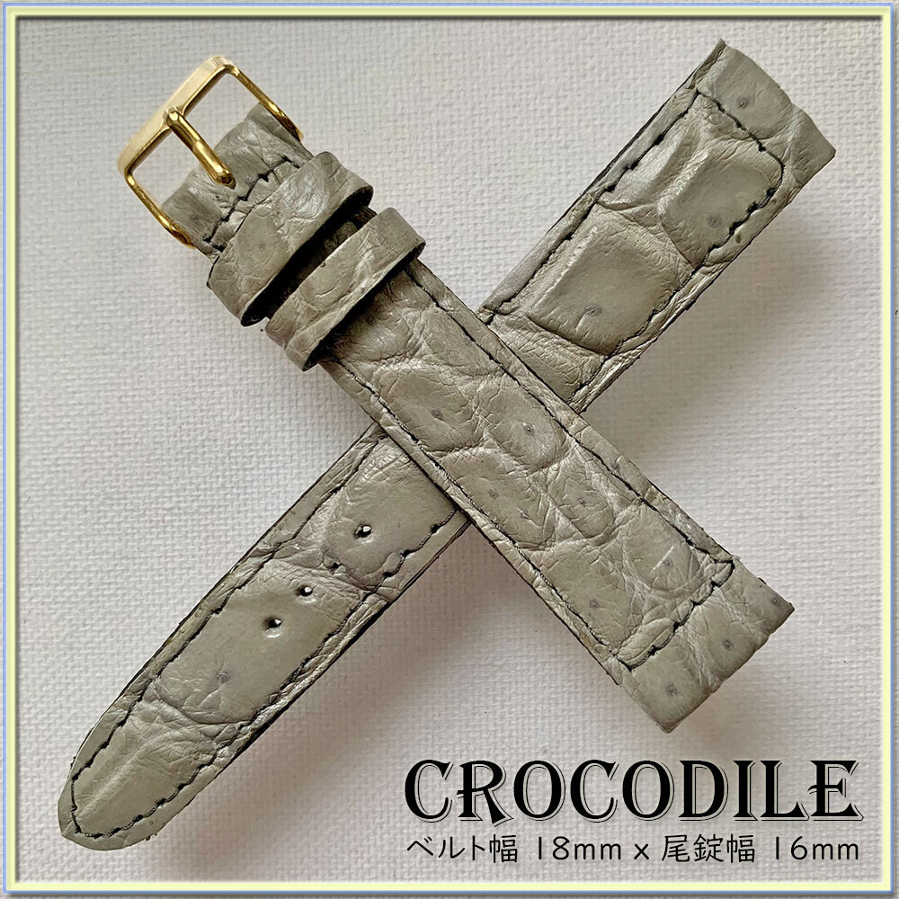 1点物 別注 18mm 本革 クロコダイル ワニ革 時計ベルト イタリアングレイ ITALIAN GRAY 玉符模様 HANDMADE バネ棒 高品質 クロコ