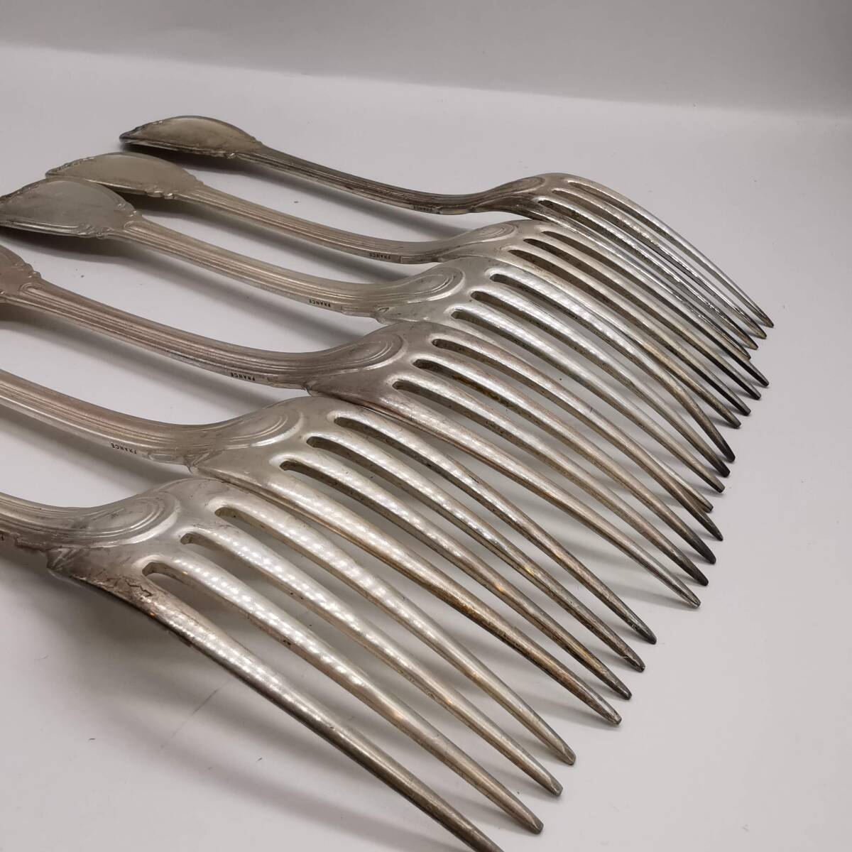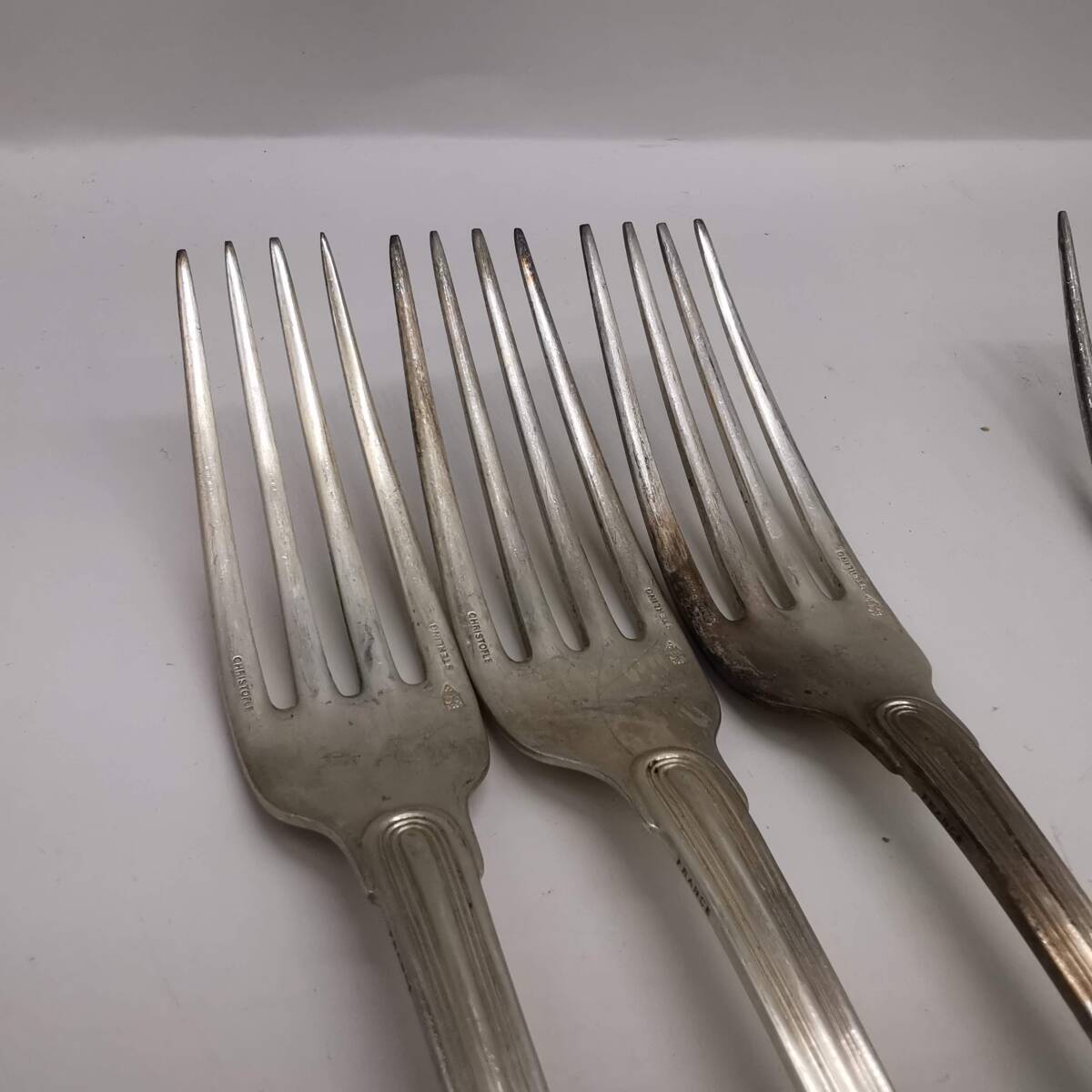【商品コード】170514S64-0523S18 【商品名】■Christofle クリストフル■銀製 21cm フォーク 6点 SV925/スターリングシルバー カトラリー アンティーク 【サイズ】全長約21cm 重量6点で約483.9g ※若干の誤差はご容赦ください。 【状態】中古品になります。経年・保管に伴うキズ、汚れ、金属のくすみ・変色・劣化等がある場合がございます。予めご理解頂き、画像にてご判断頂ける方のご入札をお待ちしております。 【注意事項】商品到着後は早めにご開封いただき、商品のご確認をお願いします。異なる商品が送られてきた、や商品説明と異なる状況、商品説明にない破損・欠品の場合、商品到着より2週間以内にご連絡ください。それ以降のご連絡の場合はいかなる理由があっても対応できかねます。また、上記に伴い返品返金対応となる場合、受け取りました商品代金及び送料分以上の諸経費はお支払いしかねますので予めご了承下さいませ。 海外などに転送される輸入代行の方などは、商品のご確認を海外等に転送される前に商品のご確認をしていただくなど、お願い申し上げるとともに、ご注意下さいますようお願い致します。 ※気になる点がございましたら質問欄よりご質問くださいませ。神経質な方のご入札はご遠慮いただき、ノークレーム・ノーリターンでのご入札をお願いいたします。 ※特に大きな傷・や汚れがある場合、写真にて掲載するよう心掛けておりますが、中古品の場合、使用感や多少の傷・汚れのあることをご理解ください。 ※ご入札の際はお支払い方法や発送方法、ご注意事項をよくご覧のうえご入札くださいますようお願い申し上げます。 |