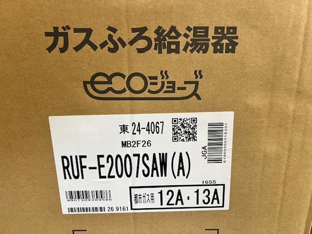 (JT2505)Rinnai【RUF-E2007SAW(A)】12A・13Aガスふろ給湯器 (24-4067)未使用品 写真が全て。