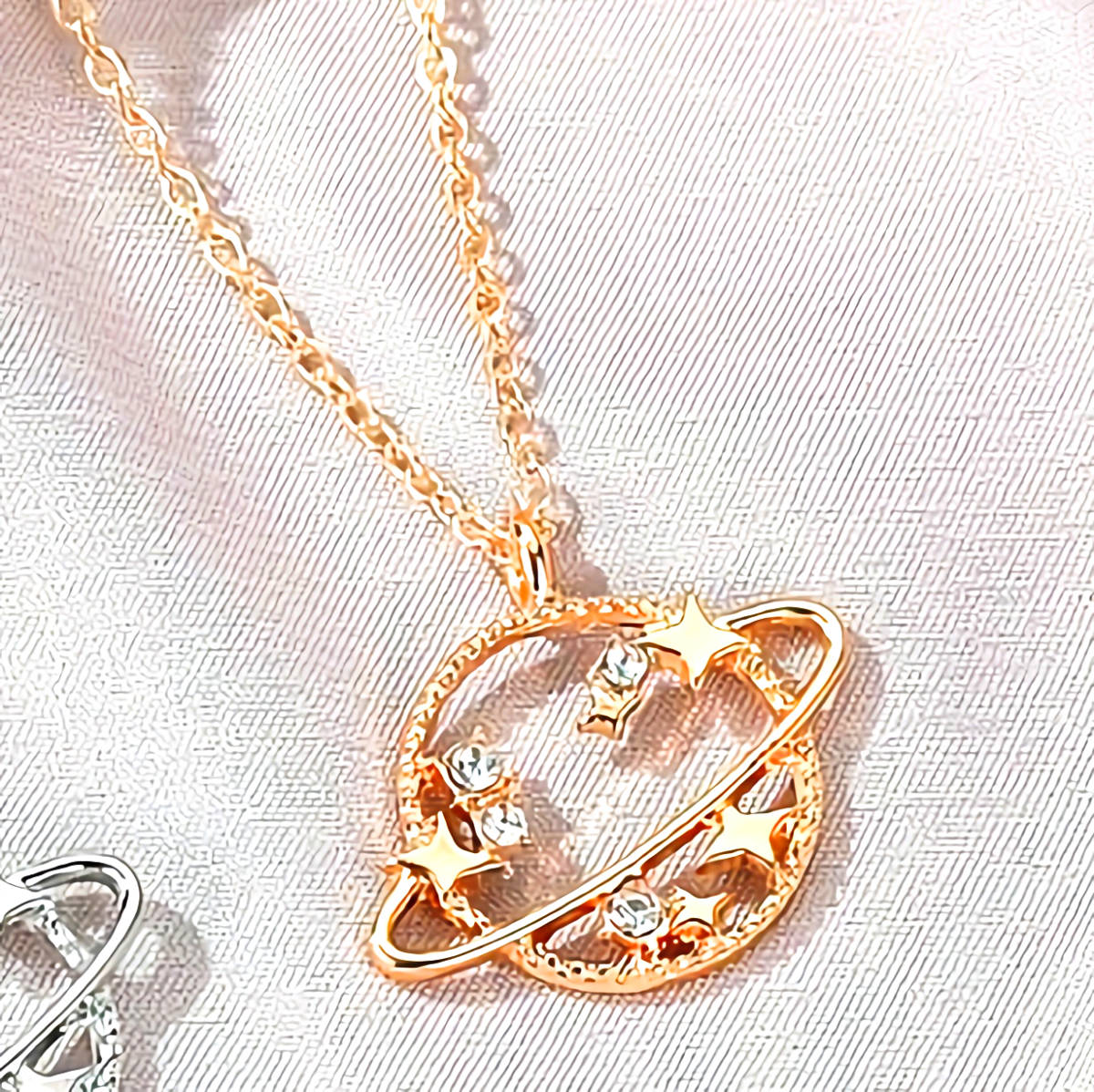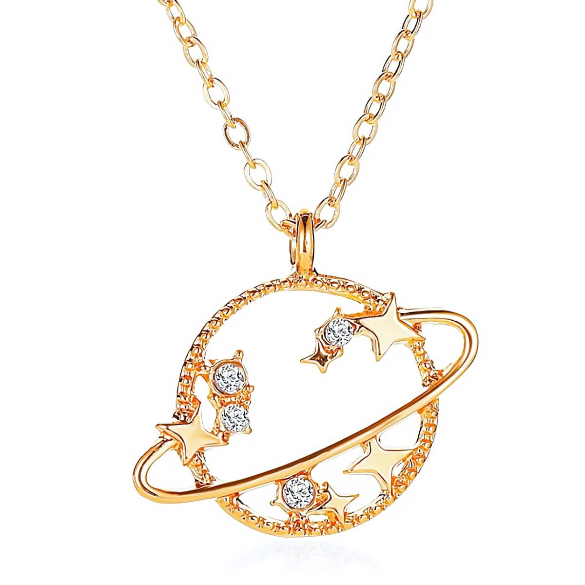 新品★送料無料★黄金の土星輪 惑星ダイヤモンド星スター K18GFゴールドネックレス誕生日プレゼント旅行連休行楽春夏海ギフト国内発送