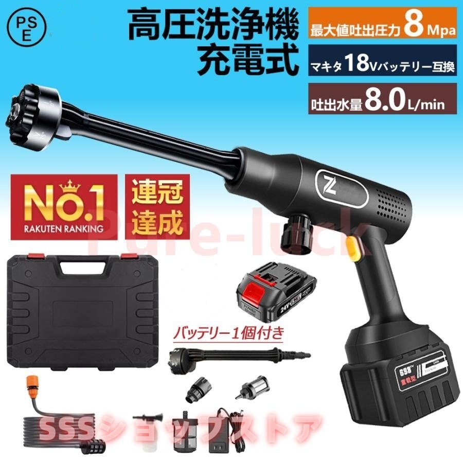 高圧洗浄機 コードレス 充電式 マキタ18Vバッテリー対応 ハンディ クリーナー バッテリー*1 強力 洗車タオル 小型 電動工具 洗車 自吸式