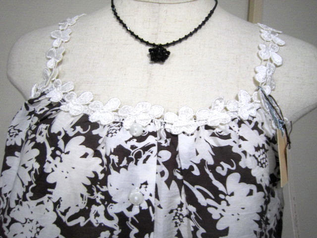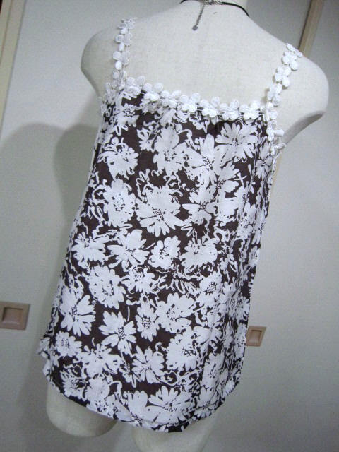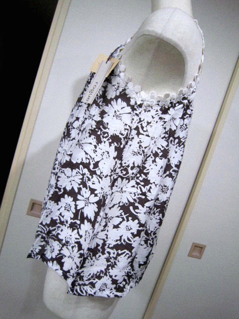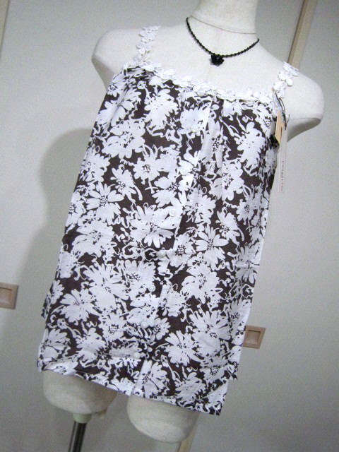 【新品タグ付】rogue ローグ*花柄キャミソール ブラウス*Mサイズ*白×茶*重ね着