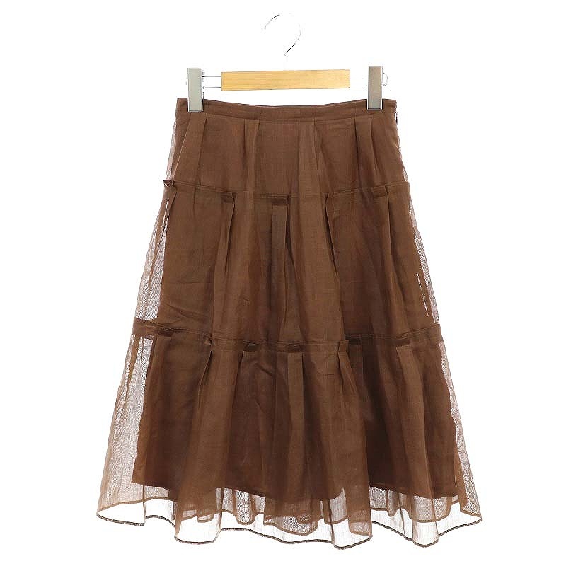 シビラ SYBILLA シアー スカート フレア ひざ丈 S 茶色 ブラウン /HS ■OS レディース