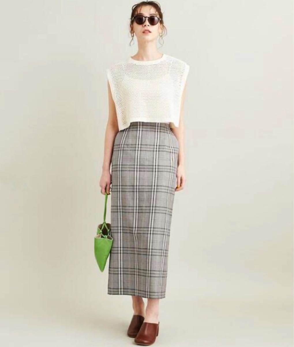 春夏に映える色彩が印象的なチェック柄タイトスカート。