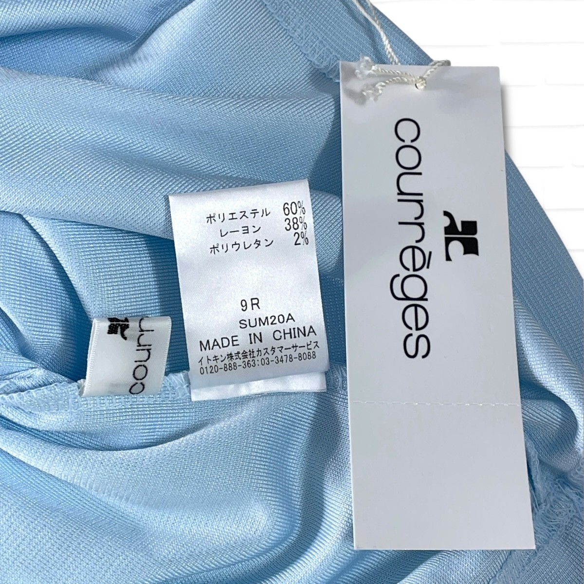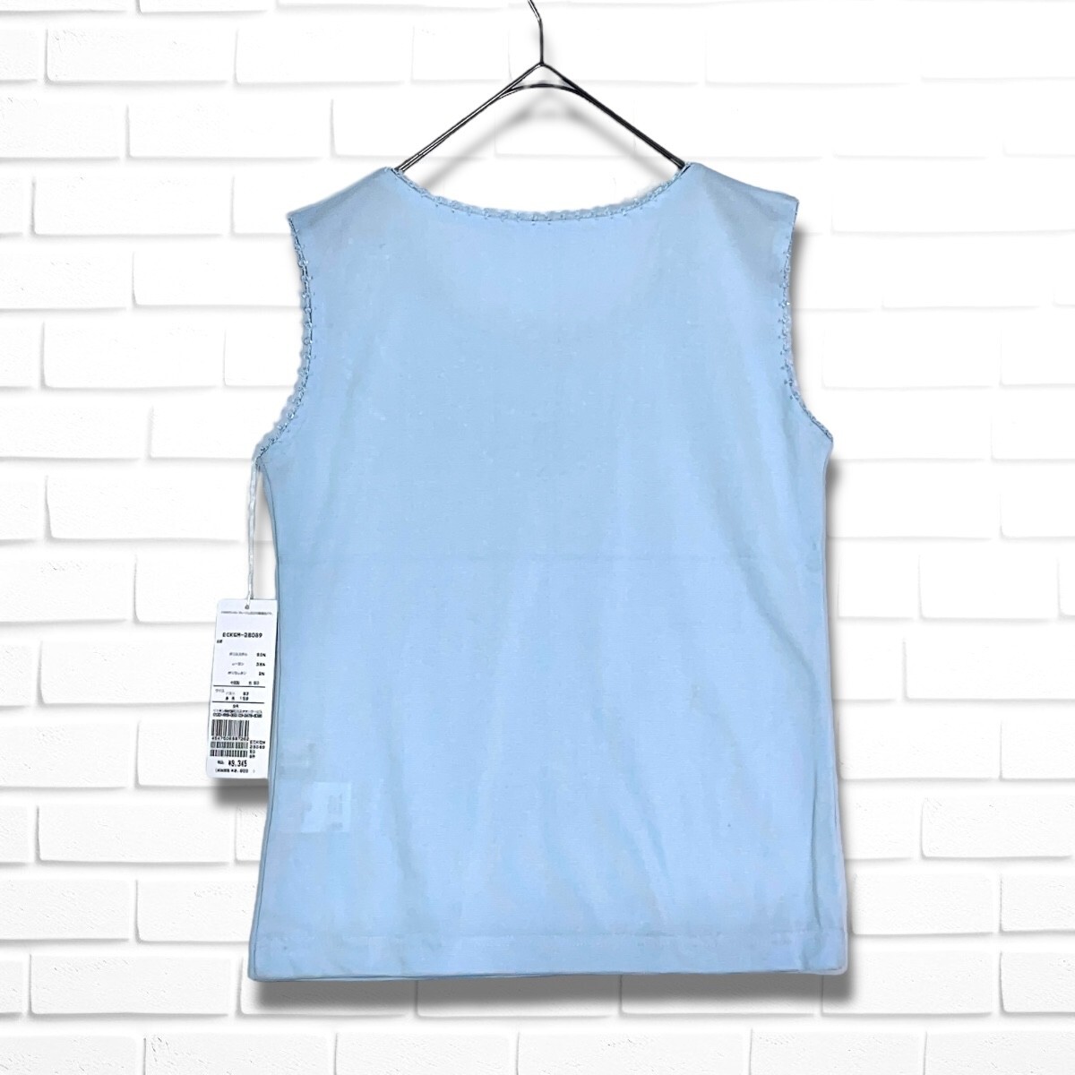 ◆新品◆ courreges クレージュ フェイク パール ストレッチ ノースリーブ カットソー プルオーバー トップス 青 ブルー レディース 9R ◆タグ付き 送料無料◆ 2755E◎