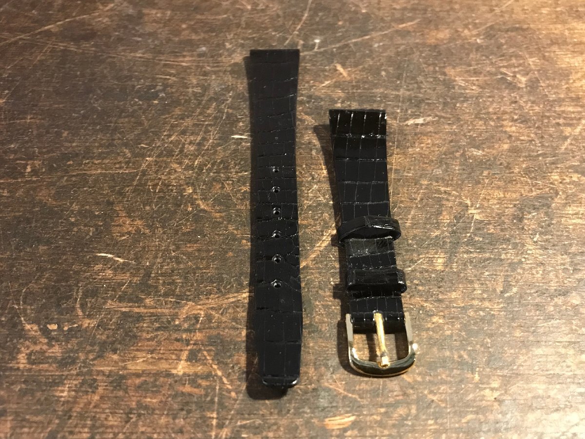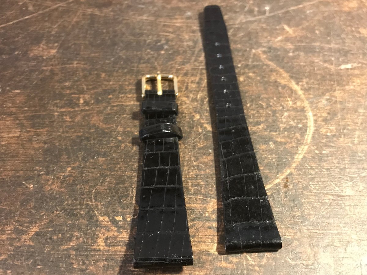 SS-8407■送料込■バンビ ミューダー ベルト バンド 腕時計 ワニ皮 レザー 部品 パーツ アンティーク レトロ 19g●皮部分に傷みあり/くATら