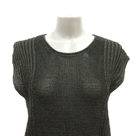 ボールジー BALLSEY トゥモローランド ニット カットソー Uネック 透かし編み フレンチスリーブ 38 カーキ /MS レディース