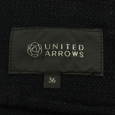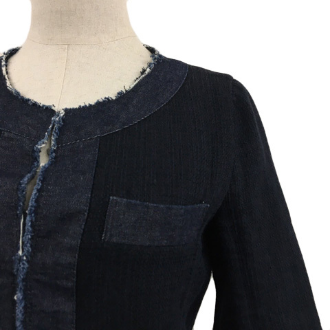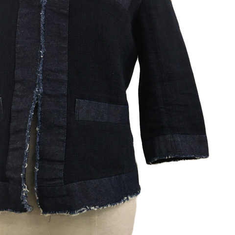 ユナイテッドアローズ UNITED ARROWS ジャケット ノーカラー カットオフ リネン混 切替 デニム 七分袖 36 紺 ネイビー レディース