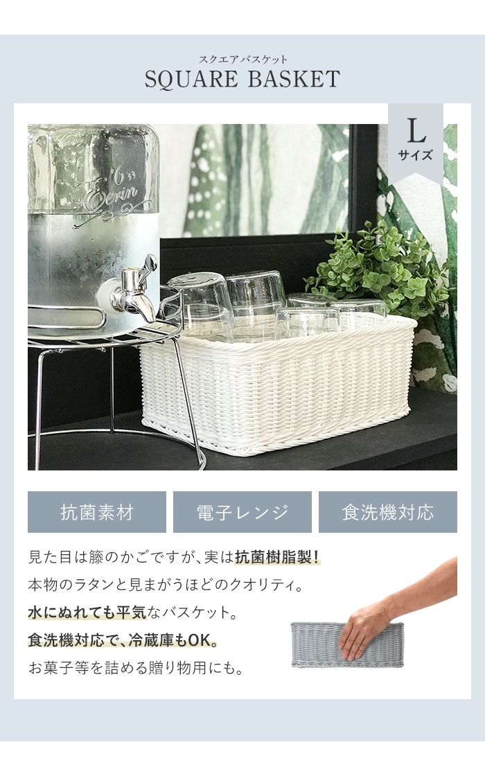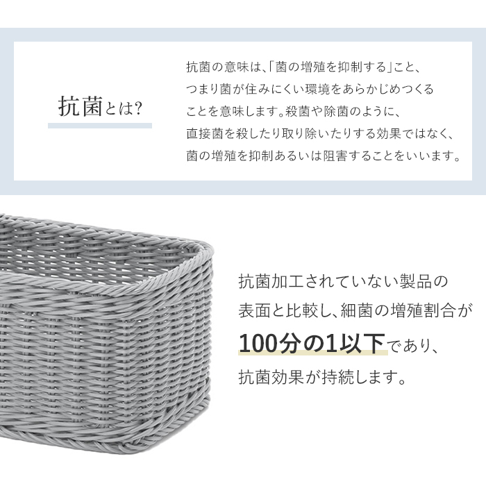 | かご バスケット 洗える 抗菌 樹脂製 ラタン 食洗機対応 電子レンジ対応 丸洗い 清潔 レンジも使える さっと洗える 小物収納 収納 おしゃれ 衛生的 こども 収納 水周り 安心 カフェ サニタリー キッチン リビング バスルーム アウトドア |