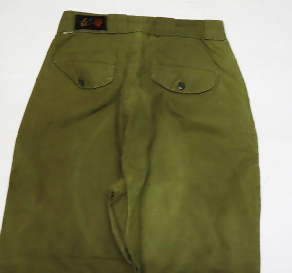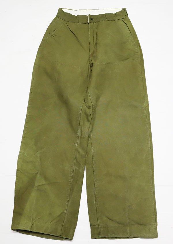 70年代頃のアメリカ製(表記はございませんが)のBULLSEYE BILLのオイルドコットンパンツの緑系です。