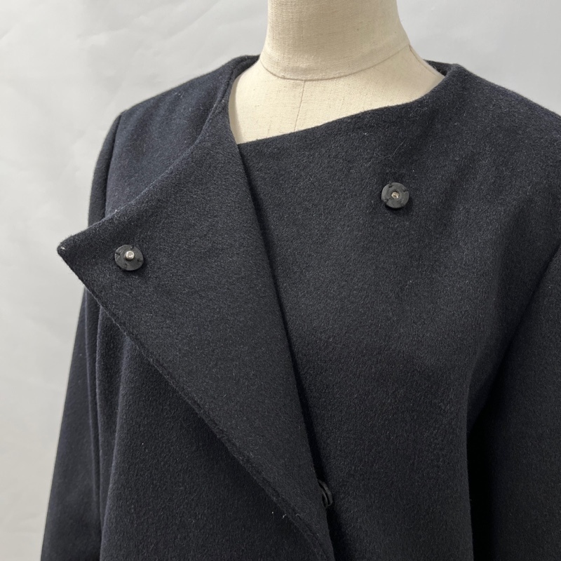 ※/COLLAGE GALLARDA GALANTE/コラージュ ガリャルダガランテ/ノーカラーラップウールコート/フリーサイズ/ダークネイビー