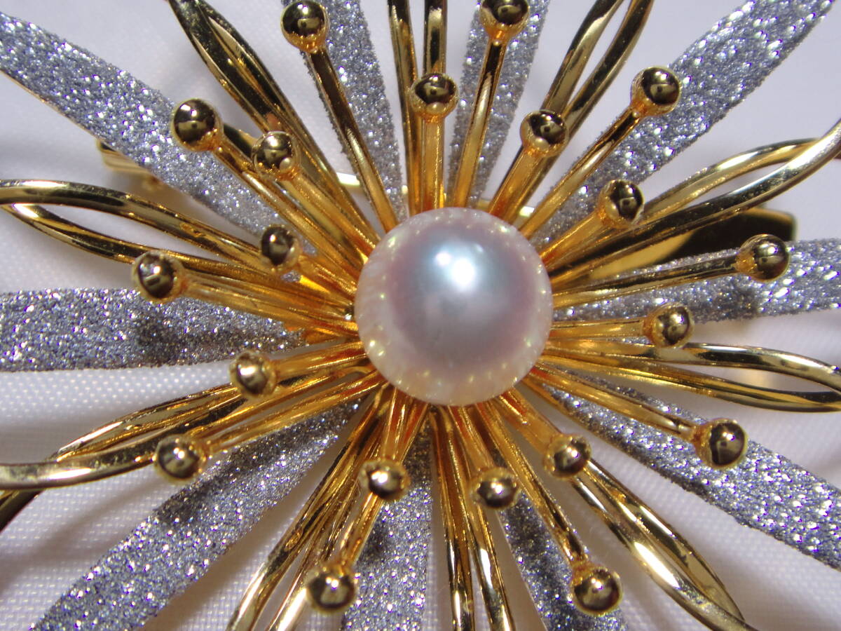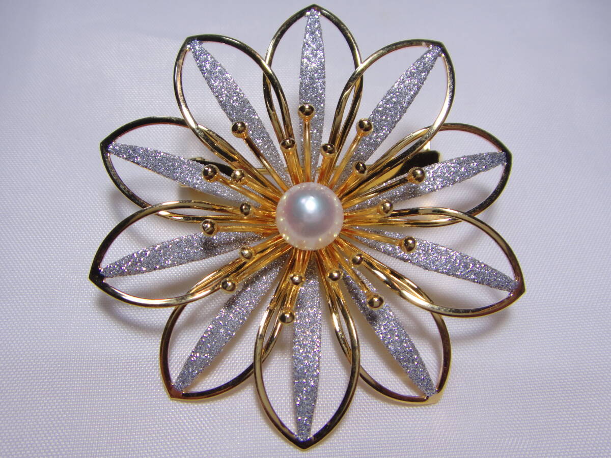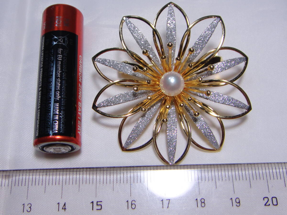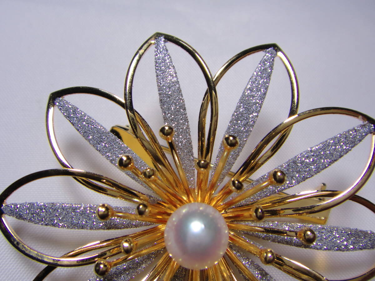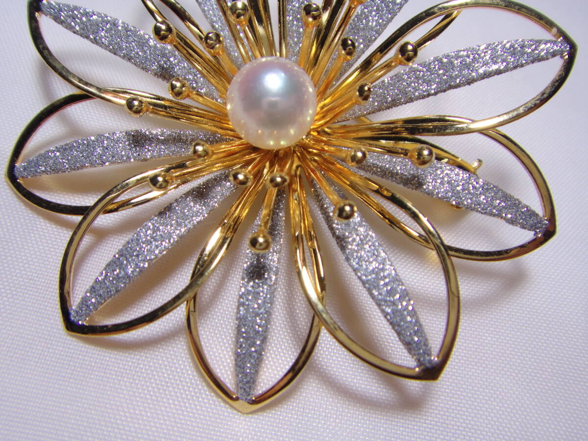 アコヤ真珠 本真珠 本パール ブローチ ツヤテリ玉 大判サイズ 金銀コンビ お花 ヴィンテージ D377