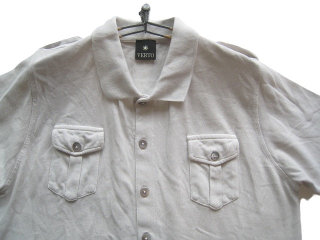 上質なコットン鹿の子生地を使用しています。VERTOらしい上品なミリタリーデザインのシャツでシルエットがとてもきれいです。定価は約27,000円です。